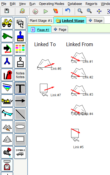 Inventory Items (Surge Piles and Surge Bins) are used to indicate where material is stored temporarily before proceeding to additional production stages. Inventory Items are used to connect different stages together using the LINK feature.