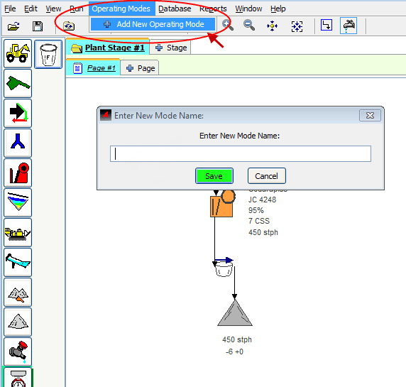 Operating Modesmenu is now active and will expand to provide different options as more modes are saved. - Add a New Operating Mode and name it to reflect a change to the plant setup.