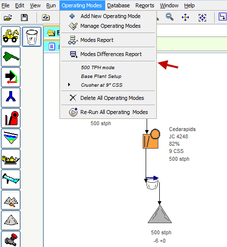 - Typical changes to plant settings saved as operating modes include: Change of Flow Stream from one machine to another; Different Feed Gradations; Crusher Settings; Screen Mesh Sizes; Splitter and Flop Gate settings; Sample Bucket Data; Spray Bars On/Off.
