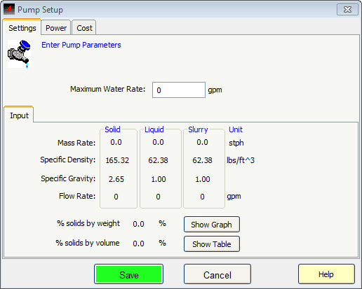 - Based on the operating parameters of the plant AggFlow will calculate the theoretical Solid, Liquid and Slurry rates flowing through the pump.