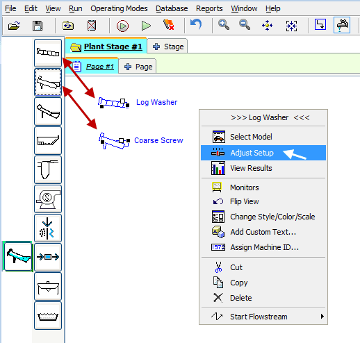 Adjust Setupfrom the short-cut menu. - Make necessary adjustments to simulate the equipment properly including adjusting water for water balance calculations