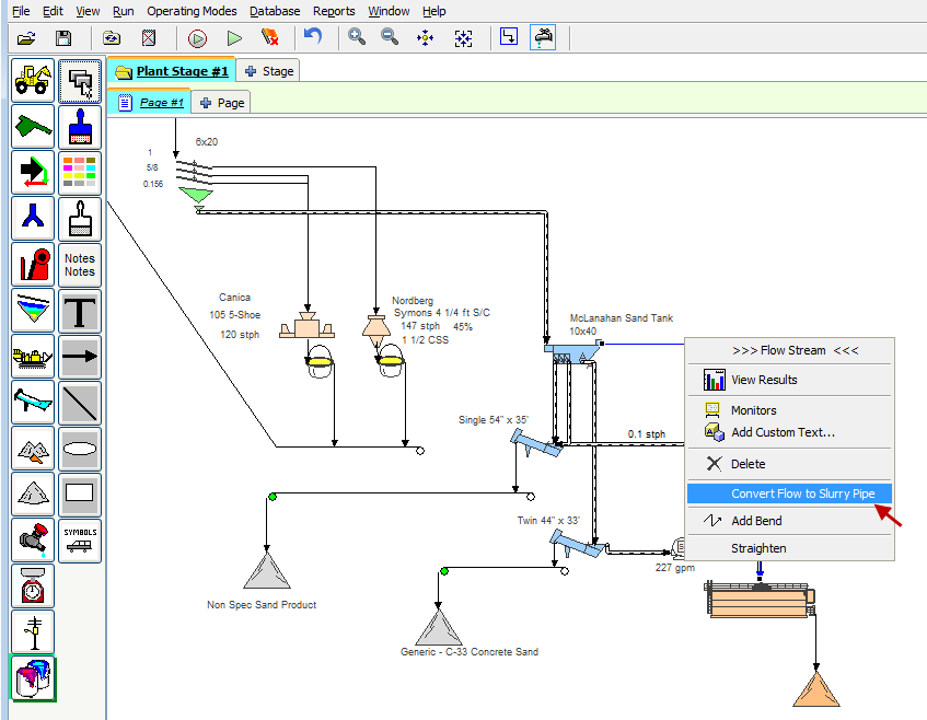 Convert Flow to Slurry Pipe. - Use the right-click menu to select